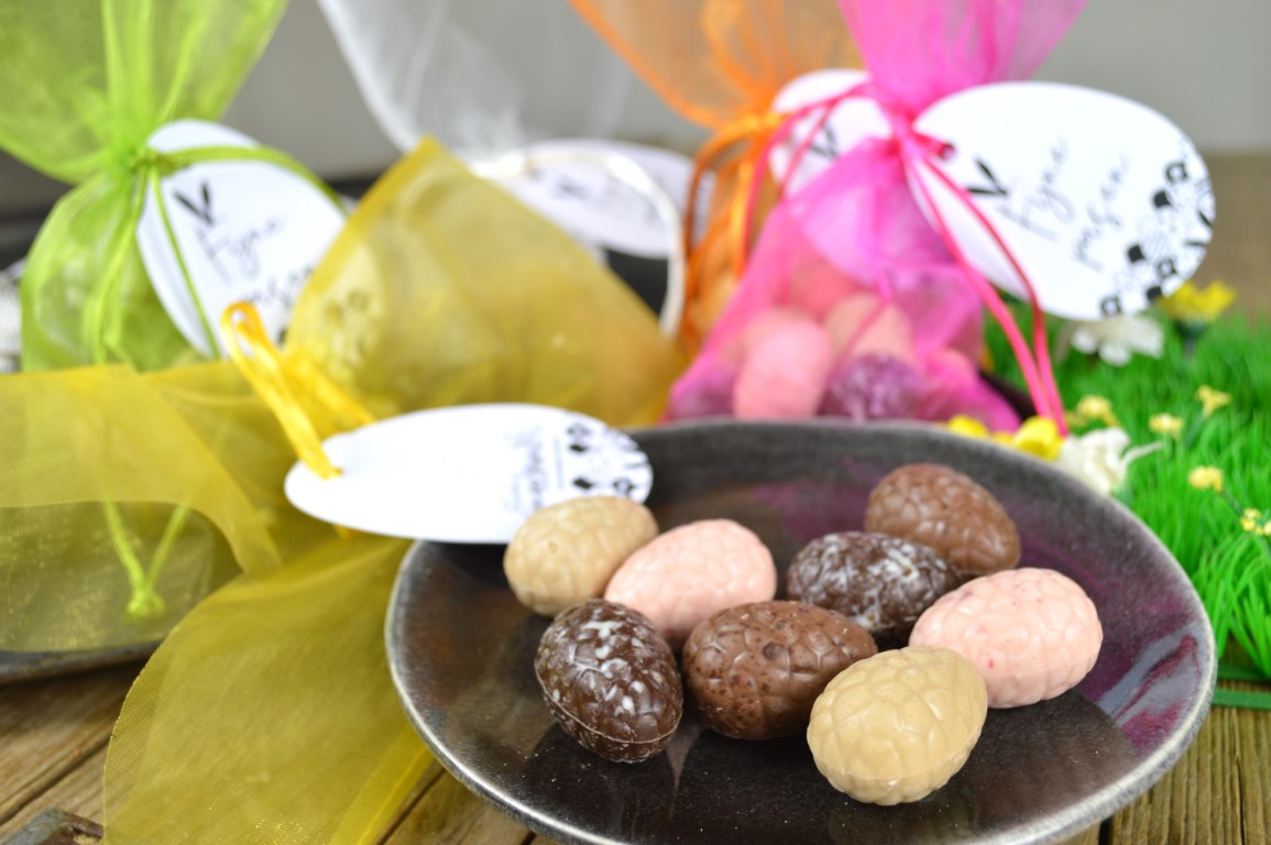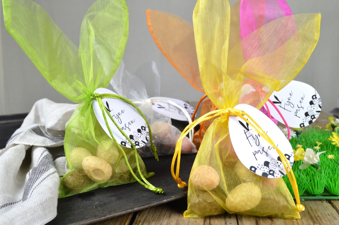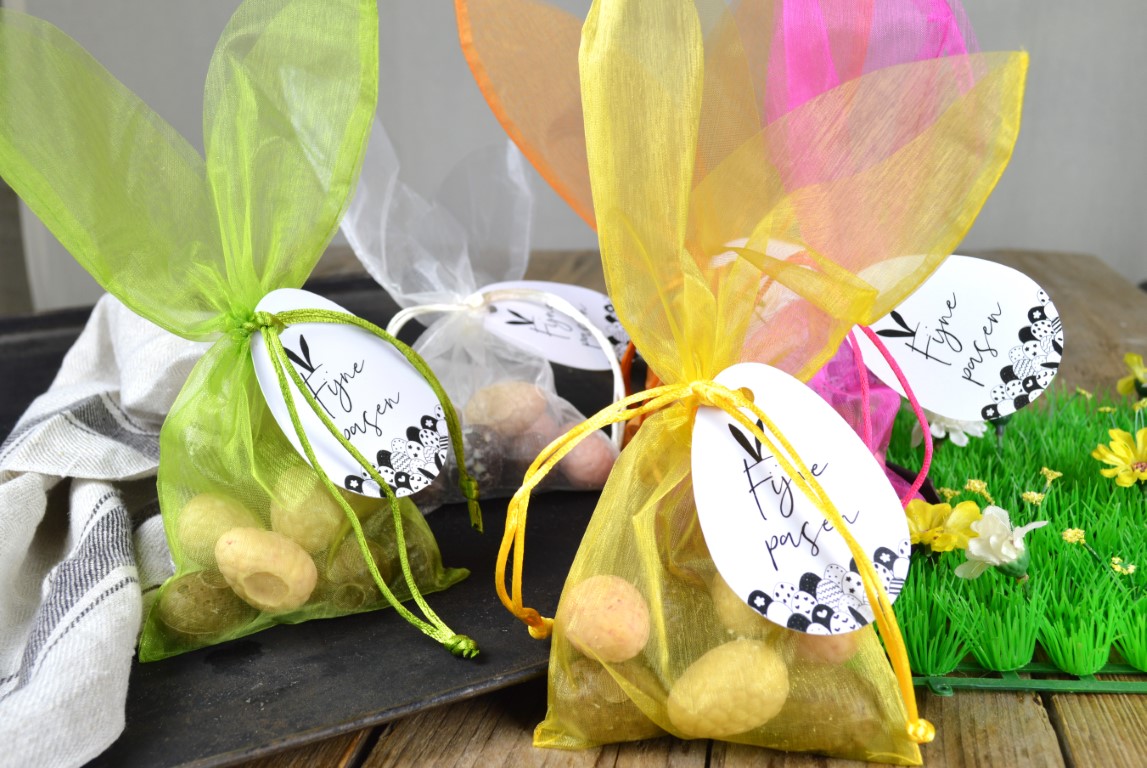 De aller-allerlekkerste gevulde bonboneitjes, verpakt in schattig organza zakje in de vorm van een paashaas. Dit mag toch niet ontbreken tijdens de paasdagen.