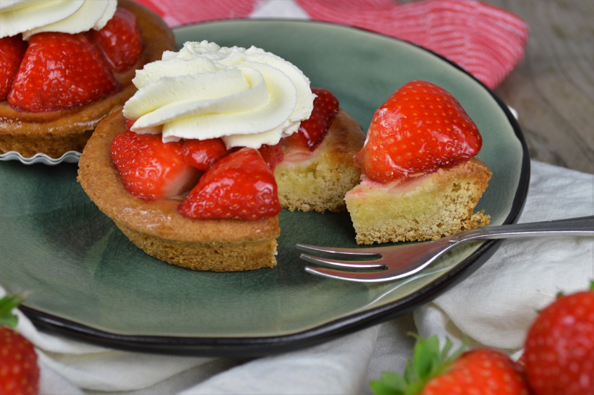 Heerlijke bakjes van hardwener deeg gevuld met een luchtig amandelspijs. Het geheel is afgewerkt met aardbeien, aardbeien en een lekkere toef slagroom. Traditionele lekkernij waarbij we met de beste ingrediënten de smakelijkste gebakjes maken.