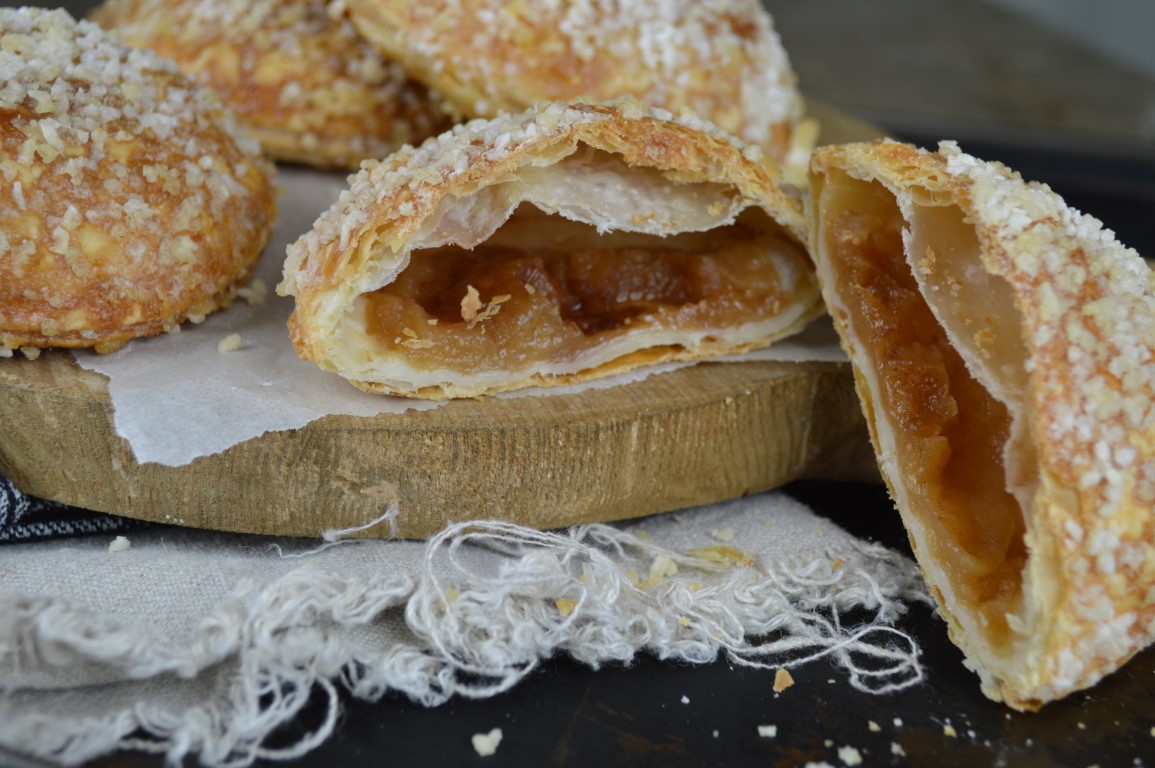 Terug van weggeweest! Heerlijke kanjers gemaakt van roomboter bladerdeeg met daarin een schijf appel gevuld met kaneel en suiker. De appelkanjer is afgewerkt met grove suiker. Koud is hij heerlijk, maar warm helemaal onweerstaanbaar!