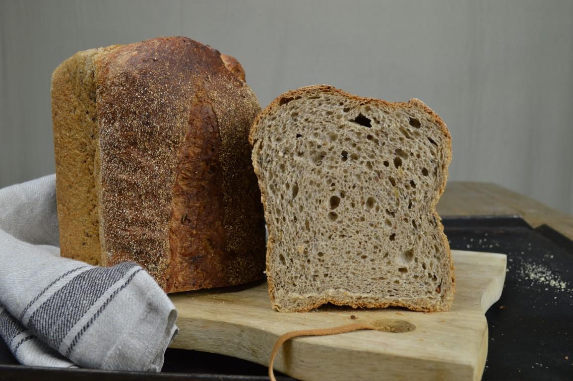Gemaakt van Boekweitmeel, tarwe- en roggebloem, gierstvlokken met boekweitdesem. Als extraatje zijn er nog zaden en pitten aan toegevoegd, zoals pompoenpitten, sesam en chiazaad.