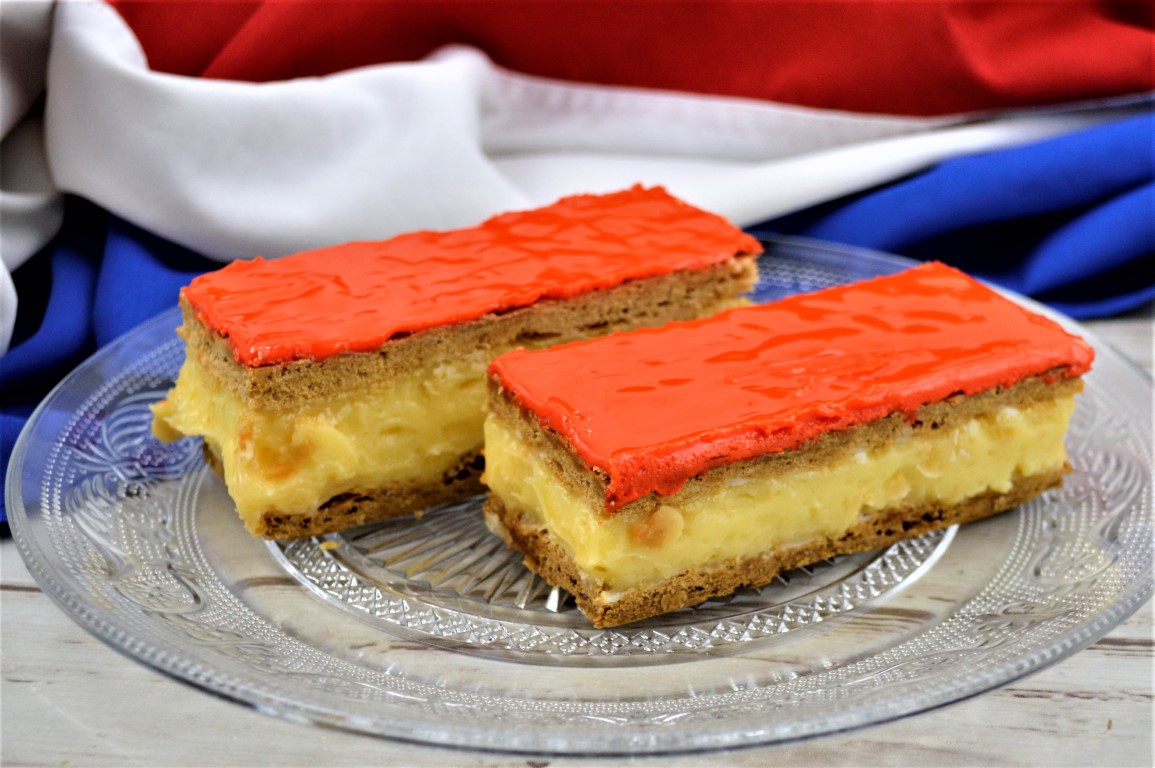Volgens traditie gebakken voor een feestelijke koningsdag. Bestel deze tompouce met heerlijk zoete fondant over het brosse bladerdeeg. Daaronder een laagje met ouderwetse, gekookte room van verse boerenmelk op weer laagje bladerdeeg.. Ambachtelijk en krakend vers. Dat is de toverformule voor onze geweldige tompouce.