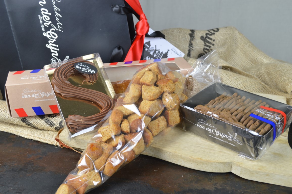 Ook in een kleinere variant te bestellen, ons leuke Piet Pakket; met onder andere een kleine amandelstaaf en heerlijke mini speculaasjes.