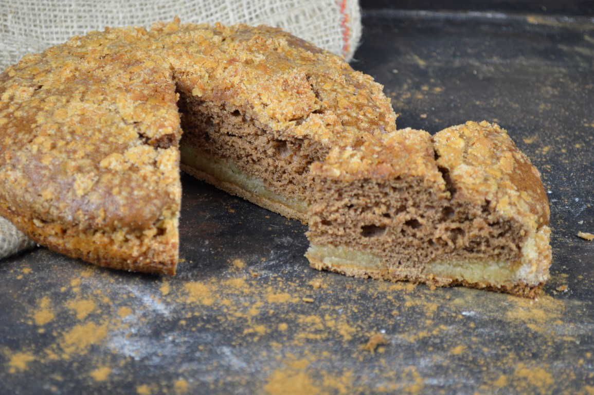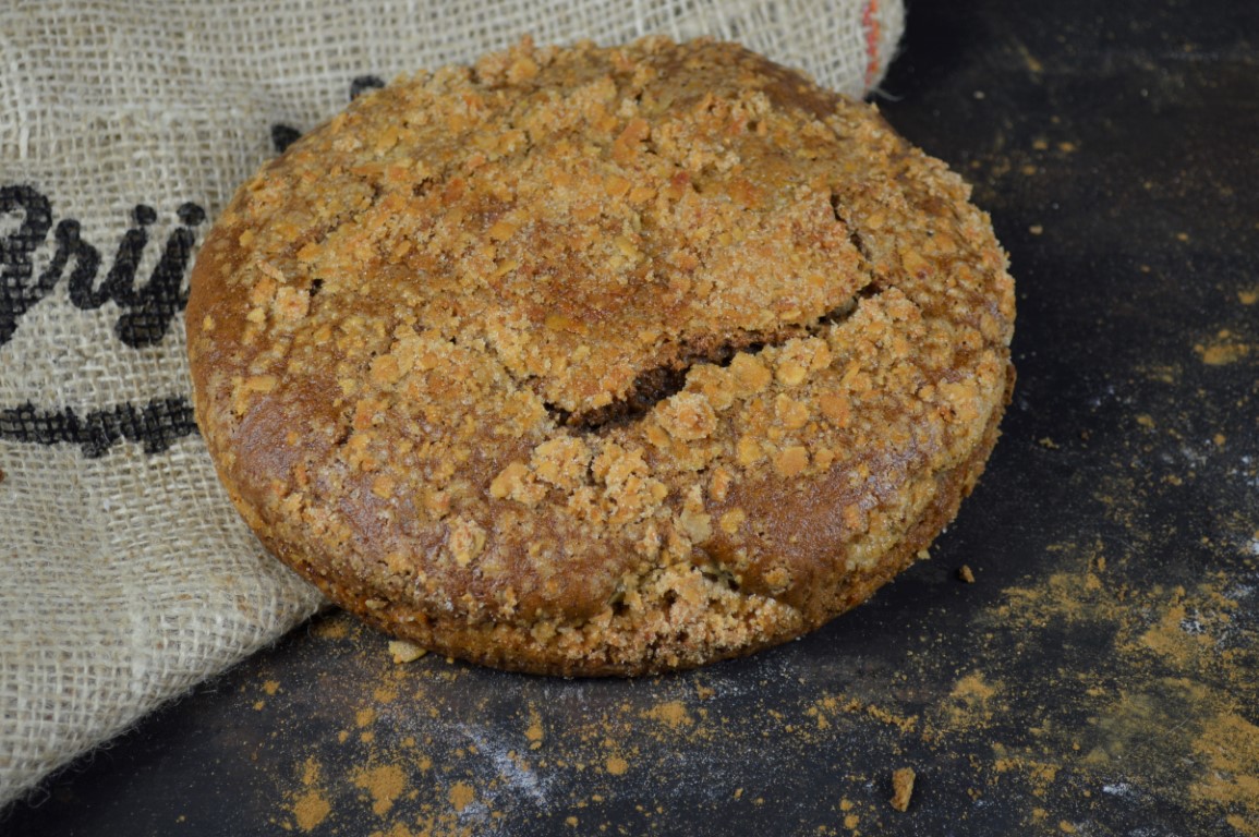 Geniet van deze heerlijke, super malse speculaascake. Gevuld met een laagje amandelspijs en afgewerkt met gesuikerde amandelsnippers.