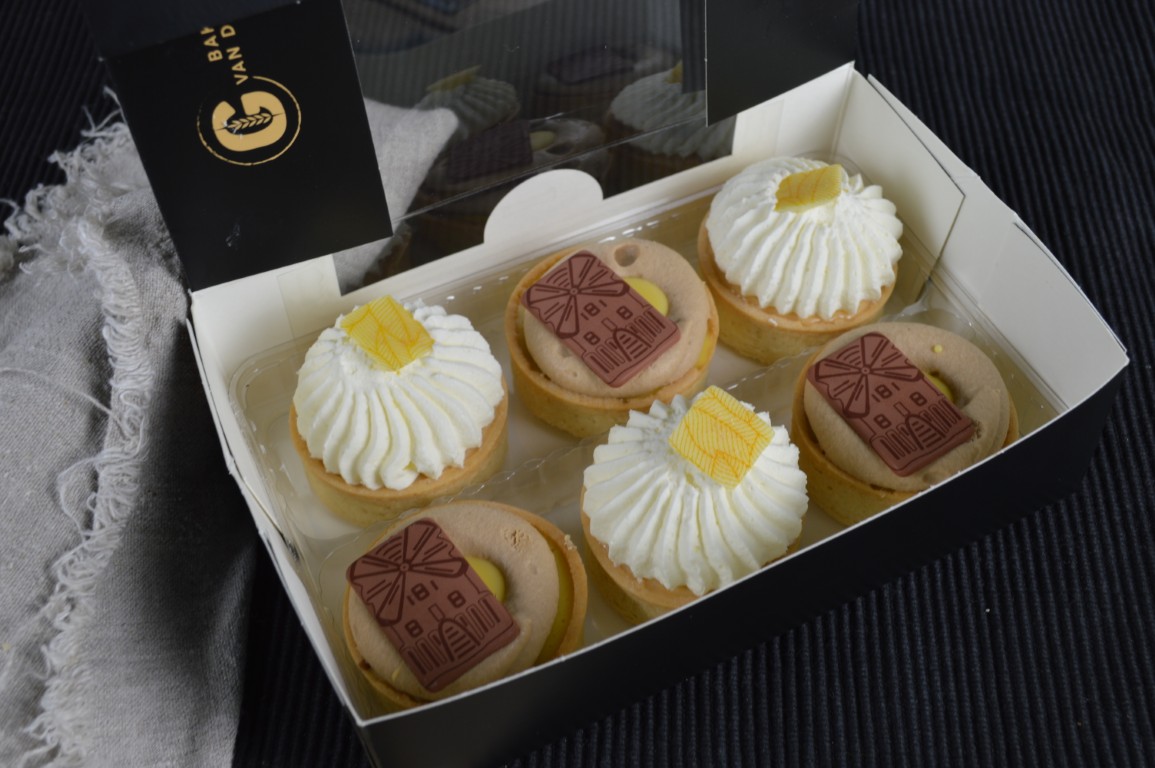 Nieuw in ons assortiment! Een doosje met 6 romige tartelettes in 2 smaken: Romige bavaroise en Speculaas passievrucht.